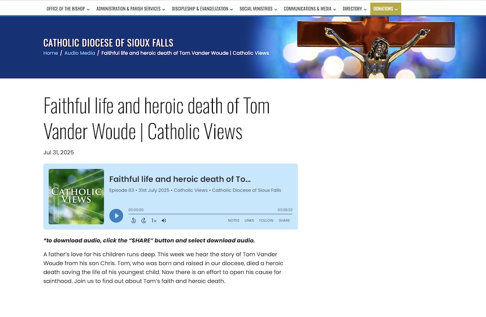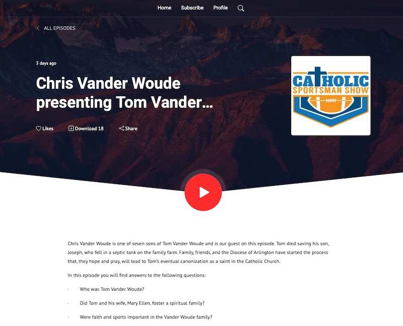 Chris Vander Woude as a guest on the Intentional Household Podcast speaking about his father and the cause for Canonization.